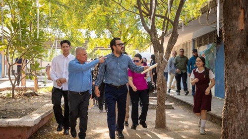 Culiacán, Sinaloa.– Durante su visita a la Escuela Secundaria General No. 5, el presidente municipal, Juan de Dios Gámez Mendívil, asumió el compromiso de atender diversas solicitudes para fortalecer la infraestructura del plantel, luego de participar en la inauguración de la nueva fachada.