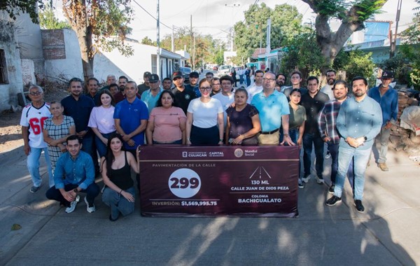 Entregan pavimentación de la calle Juan de Dios Peza en Bachigualato; vecinos agradecen obra