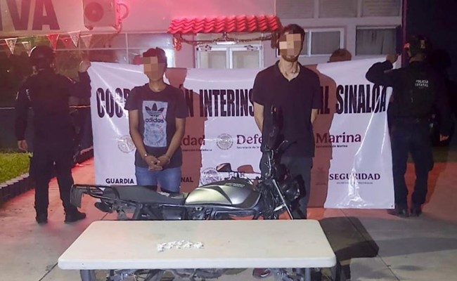 Detienen a 2 en posesión de droga; circulaban en una motocicleta a exceso de velocidad