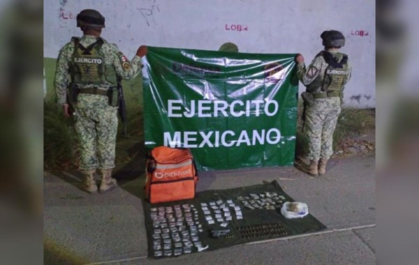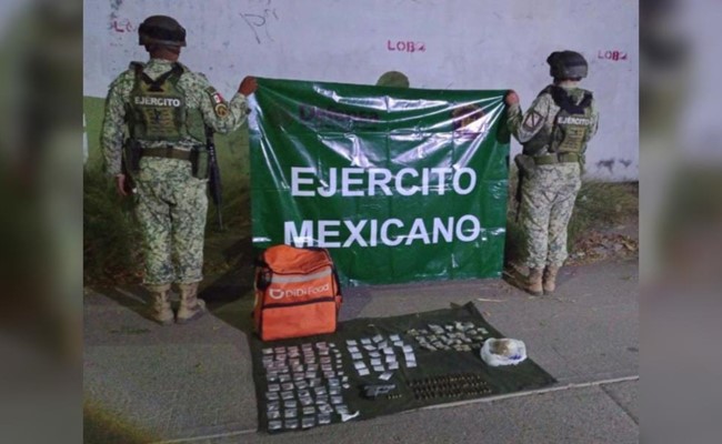 Hallan al interior de una mochila de entrega de alimento armamento y drogas, en Culiacán