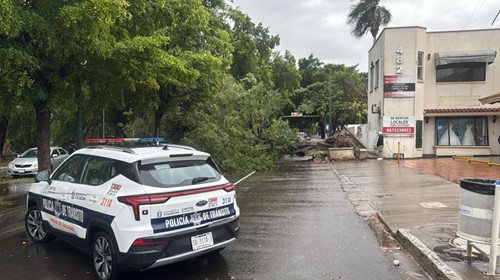 Caída de árbol por lluvias en Culiacán mantiene cerrado cruce de Niños Héroes y Riva Palacio