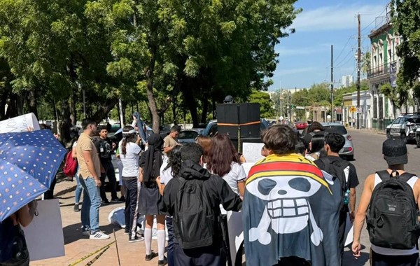 Marchan estudiantes de la Plazuela Rosales al Congreso del Estado ante inconformidades