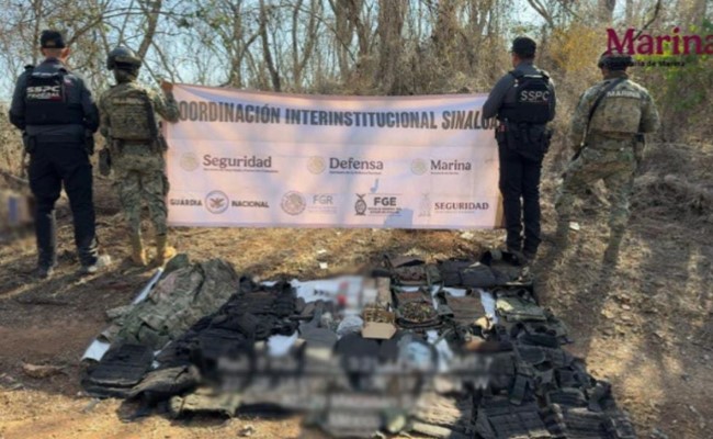 Culiacán, Sinaloa.- En acciones coordinadas en distintos municipios del estado, autoridades federales realizaron aseguramientos de armamento, artefactos explosivos, equipo táctico y un cargamento de precursor químico presuntamente destinado a la elaboración de drogas sintéticas.