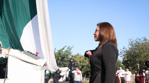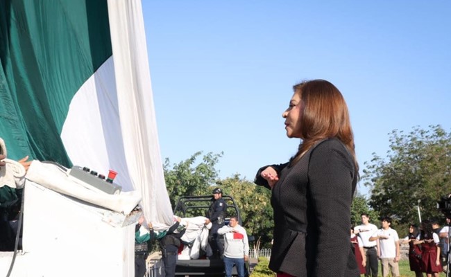 Culiacán, Sinaloa.-Autoridades estatales, civiles y militares conmemoraron el Día de la Bandera con un acto cívico realizado en la Plaza Cívica del Asta Monumental, en el Desarrollo Urbano Tres Ríos, encabezado por la secretaria de Educación Pública y Cultura, Gloria Himelda Félix Niebla, en r...