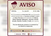 • Suspenden clases en municipios de Sinaloa por pronóstico de lluvias